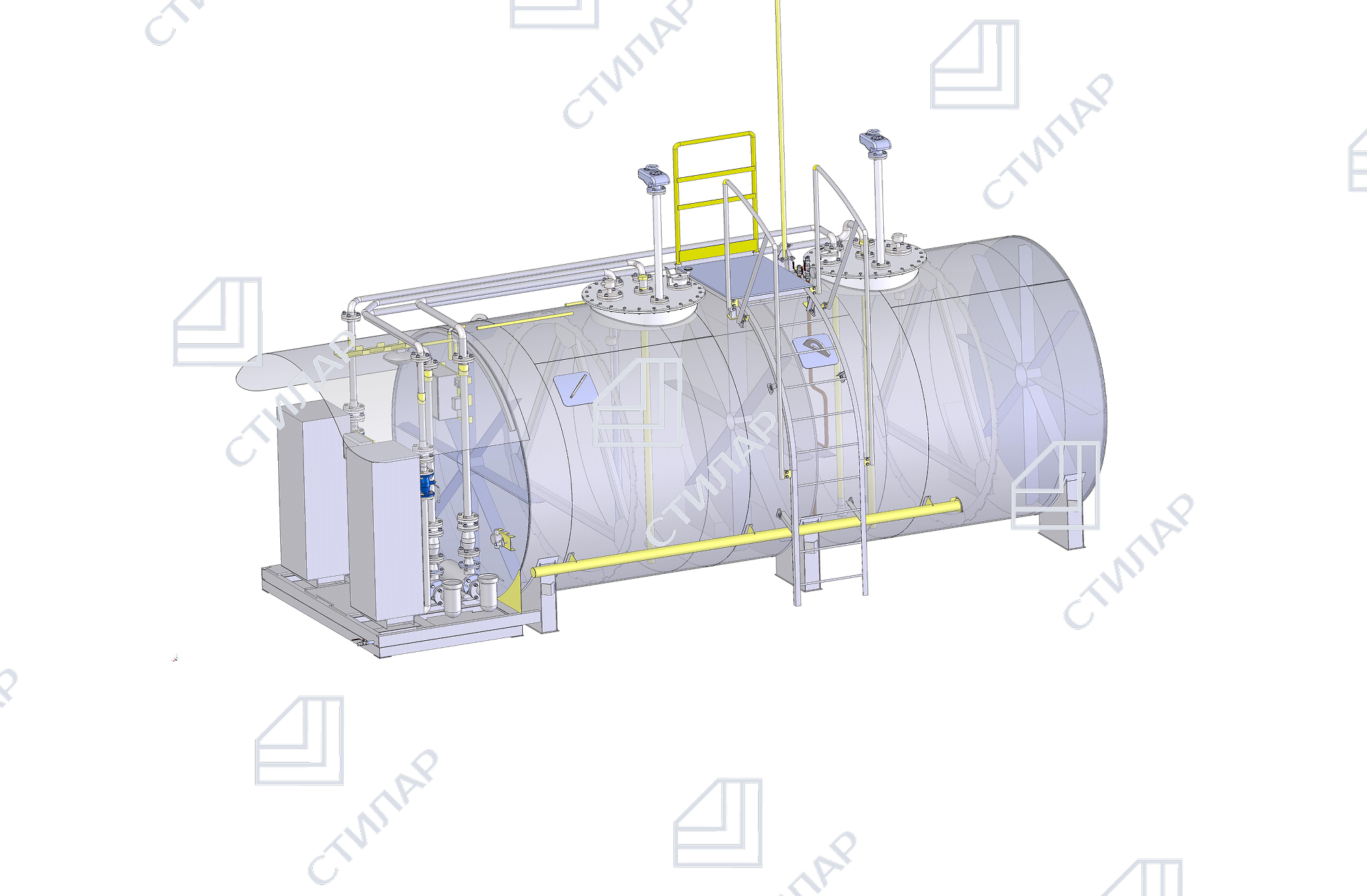 Резервуар двустенный четырёхсекционный резервуар объемом 45 м.куб. (сталь Ст3 4/4мм, система контроля межстенного пространства с сиреной, азот)