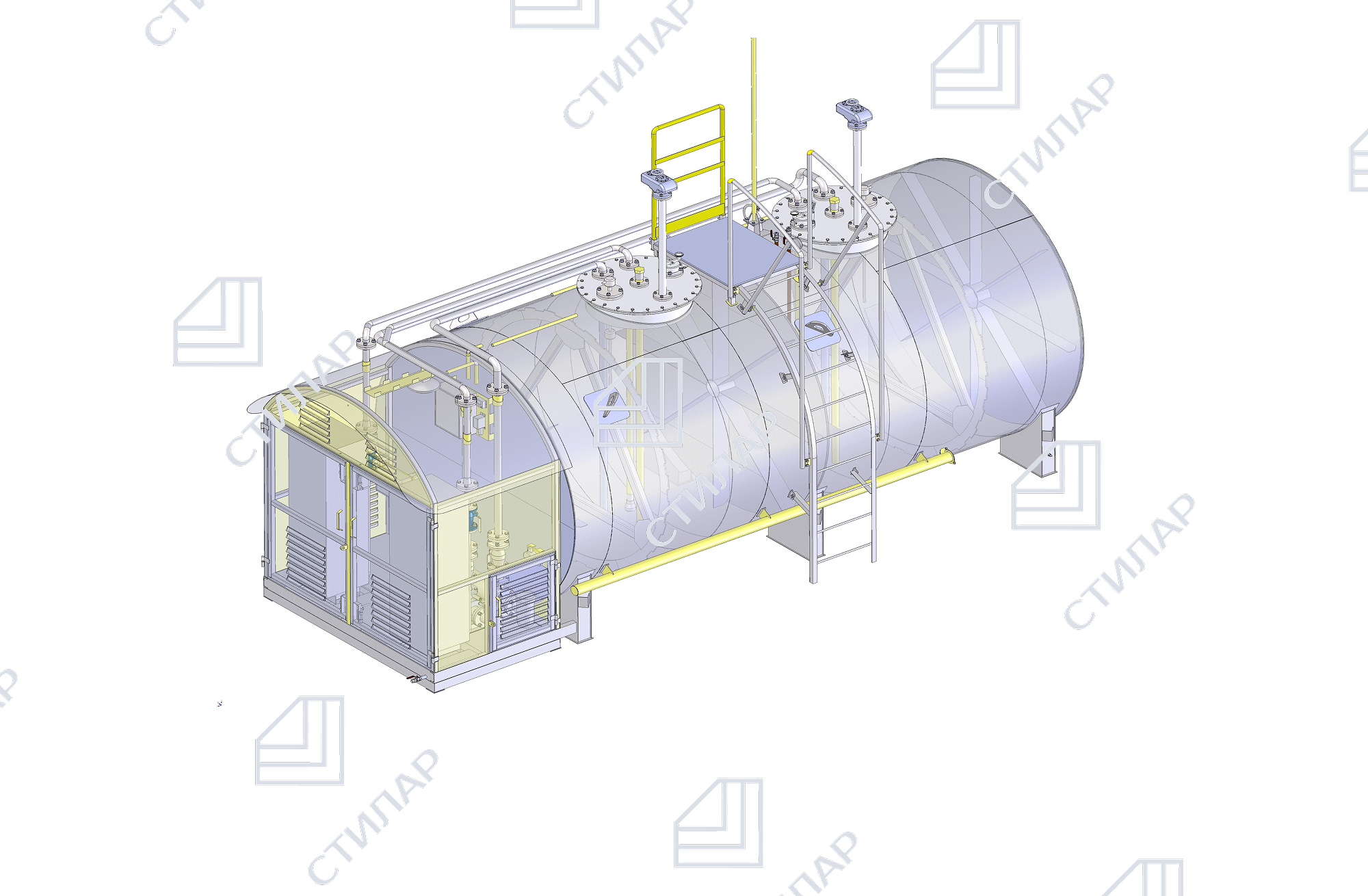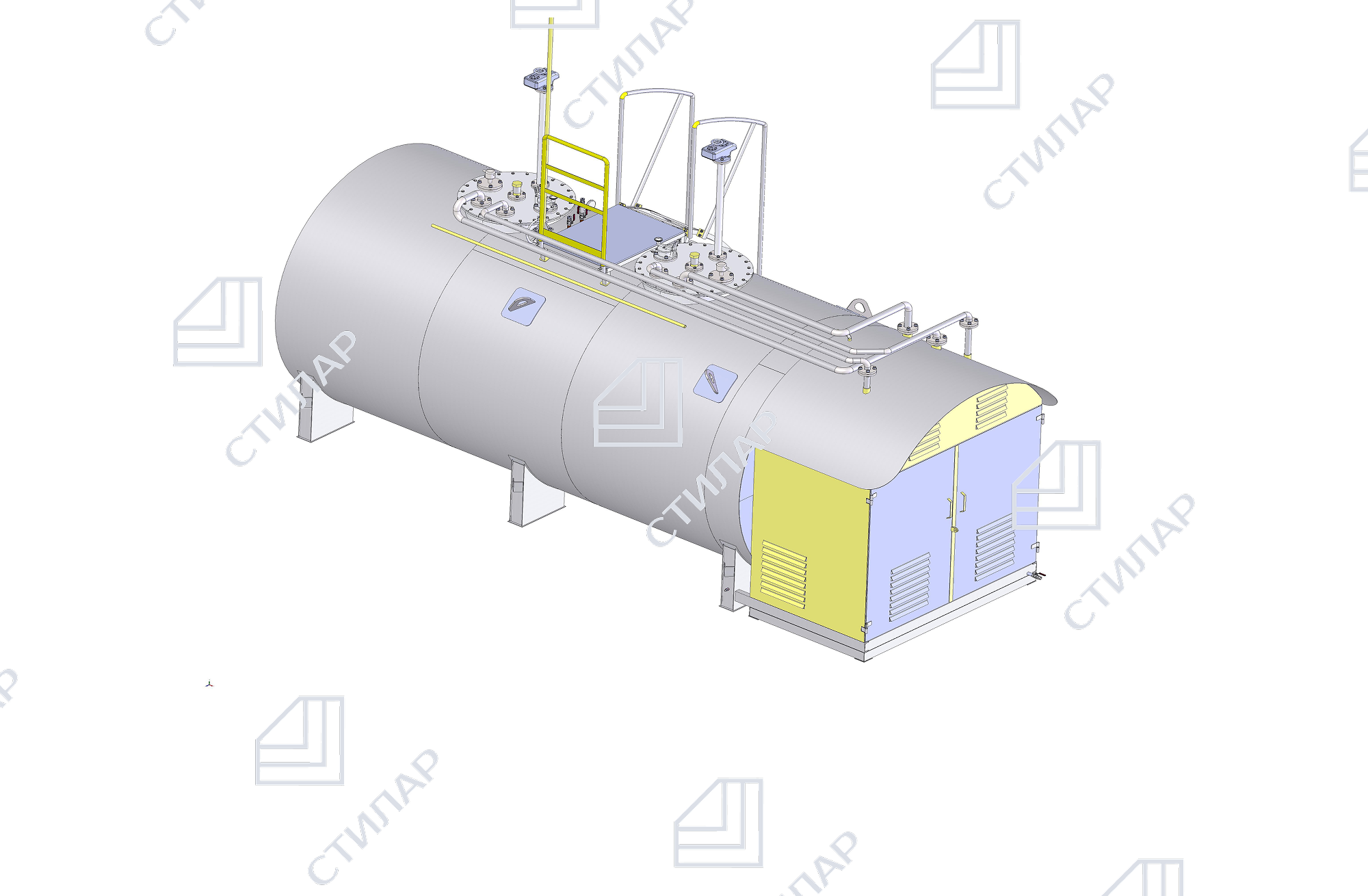 • Двустенный резервуар для хранения топлива (материал — сталь Ст3 или 09Г2С)